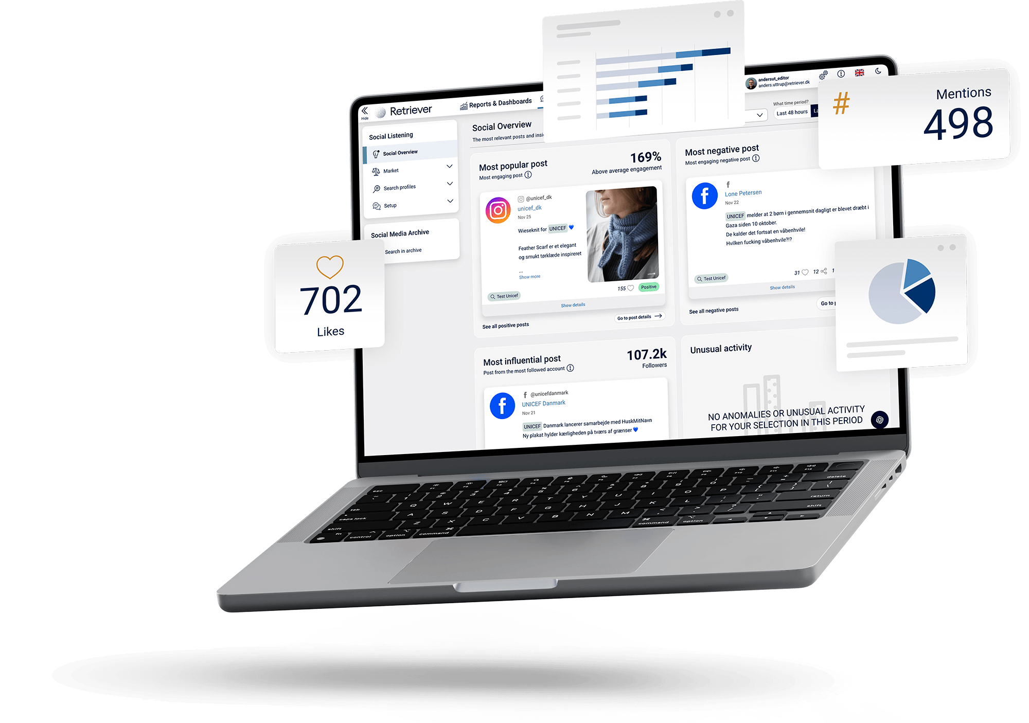 Det bliver meget nemmere at publicere og optimere alle dine aktiviteter på de sociale medier med Retrievers platform til social media management. Sammenlign f.eks dine forskellige kampagner og se, hvilket indhold der fungerer bedst i hvilke kanaler.